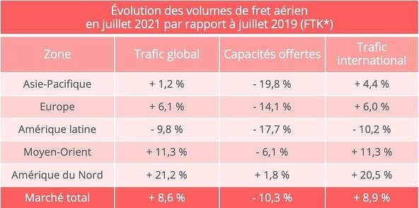 En ce qui concerne l’offre, celle-ci reste fragile bien que la situation se détende légèrement. Néanmoins, la prudence reste de rigueur car l’expansion du variant Delta a nécessité la mise en place de mesures sanitaires qui ont fortement affecté les opérations aéroportuaires. Tous ces facteurs ont contribué à la réduction des programmes de vols tant passagers que cargo.