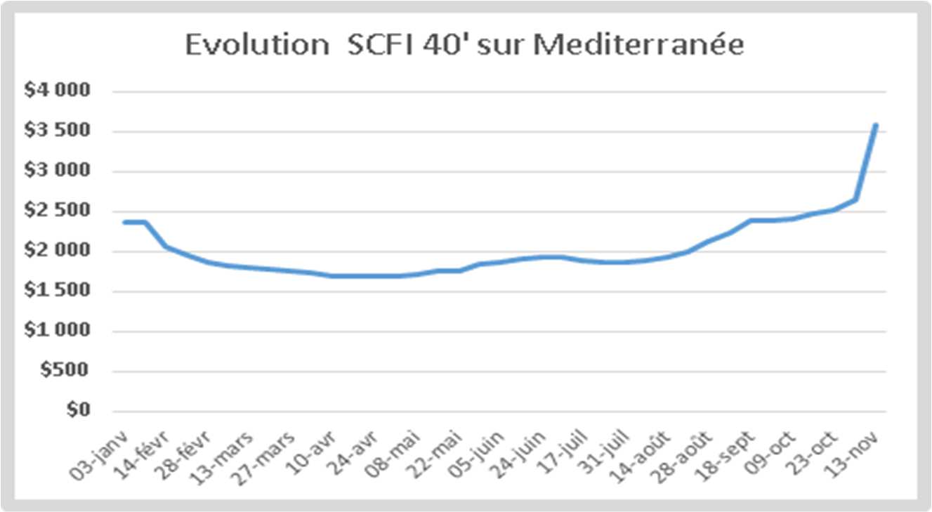 - The shipping companies chose to supply empty containers on the Transpacific (USA-China) at first and then on the Asia-Europe trade route, being the most profitable (freight rate X3 within a month, up to USD 5400/40 in December).
